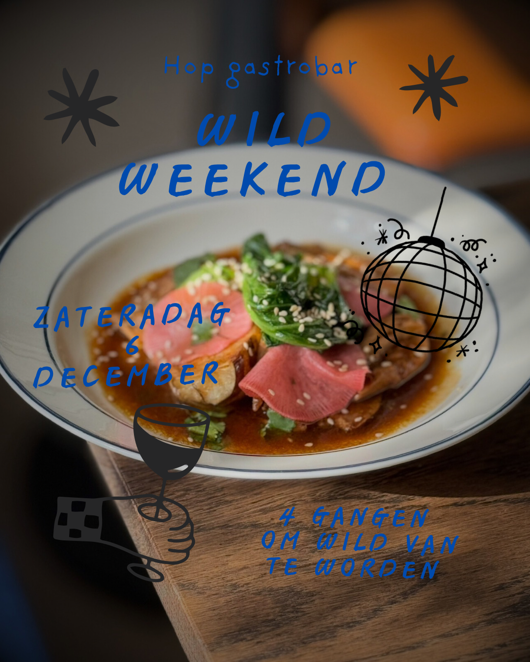 Op zaterdag 6 december pakken we uit met een avond die helemaal in het teken staat van smaak en gezelligheid: Wild Weekend. Een heerlijk 4-gangen wildmenu waarin de rijke, volle smaken van het seizoen centraal staan.